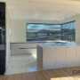 Wykonane przez nas meble w tym fascynującym, niejednoznacznym odcieniu połączyliśmy ze spiekiem REM, który odzwierciedla niemal liniową strukturę Calacatta Lincoln. Jedną z największych innowacji technologicznych tego roku jest synchronizacja żyłkowania z usłojeniem. Cenimy Dekton Rem za jego najwyższą naturalną delikatność.